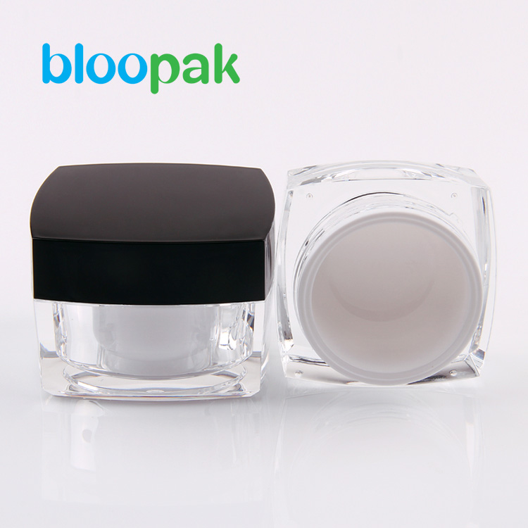 Bloopak has New product cosmetic packaging 15g 30g 50g. Empty Luxury black amber plastic acrylic lotion cream square container cosmetic jar in bulk stock ,so can be deliveried in 12h after we receive the payment.